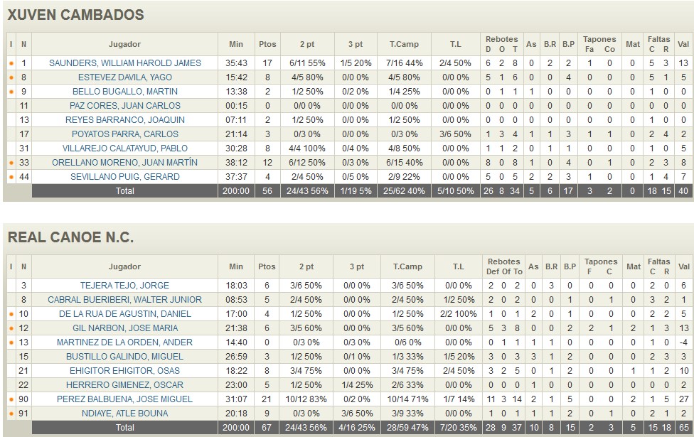 Partido un tanto esquizofrénico el jugado a primera hora de la tarde del sábado en O Pombal de Cambados, con los locales comenzando con mayor intensidad y dominando el marcador, pero que anotó más puntos en los primeros 8 minutos que en los 22 restantes. El Real Canoe ajustó en defensa unos conceptos que secaron al ataque local mientras que Tyson Pérez se encumbraba en el jugador del partido, con 21 puntos y 14 rebotes, bien ayudado por el joven Osas Ehigitor en la pintura.