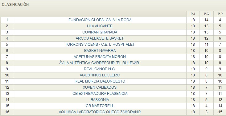 Con la derrota de Hospitalet frente a Baskonia, Albacete Basket se posiciona en la cuarta plaza con 12 victorias. La vuelta de Otero ha dado equilibrio interior al equipo. Sólo le falta recuperar a los lesionados y las buenas sensaciones de inicio de la temporada para consolidarse en lo más alto de la tabla, equipo tiene para ello.