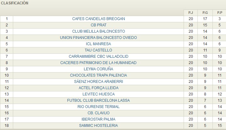 Por detrás viene una terna de perseguidores (Melilla, Oviedo y Manresa) que marcan ya tres triunfos de diferencias con el 6º clasificado que es el TAU y que se aleja ya de la lucha por el ascenso directo.