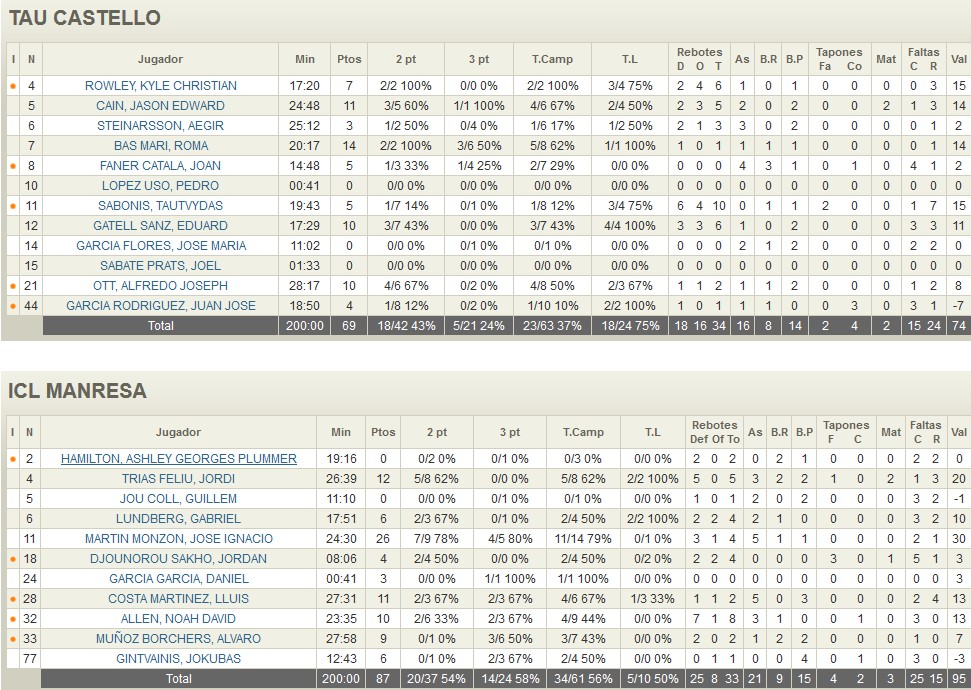 Tocaba ponerse el mono de faena en el siguiente cuarto, pero los locales no lo hacían lo suficiente, ya que se producían canastas fáciles del ICL Manresa, lo que se acabó traduciendo en el segundo tiempo muerto solicitado por el técnico castellonense, que vio la situación muy peliaguda en el minuto 14 con 20-36 en el luminoso. El TAU Castelló pasó a defender en zona y con el buen hacer ofensivo de un inspirado Romà Bas se llegó a inquietar a los catalanes (27-39), quienes también echarían mano de un tiempo muerto. Con este tipo de defensas se generan más situaciones de tiro y lo aprovechó unos súper clase como Nacho Martín, con varias temporadas en ACB como aval, para dar un recital de lanzamientos, estando bien secundado por otro jugador que no necesita presentación: Jordi Trías. Estos dos fueron los principales ejecutores de lo que parecía la herida de muerte del TAU Castelló (35-54 al descanso). A los de La Plana les faltaba espíritu, garra, convicción… Se les vio bastante abatidos, como asustados por la calidad del rival.
