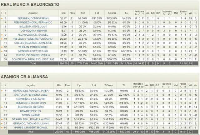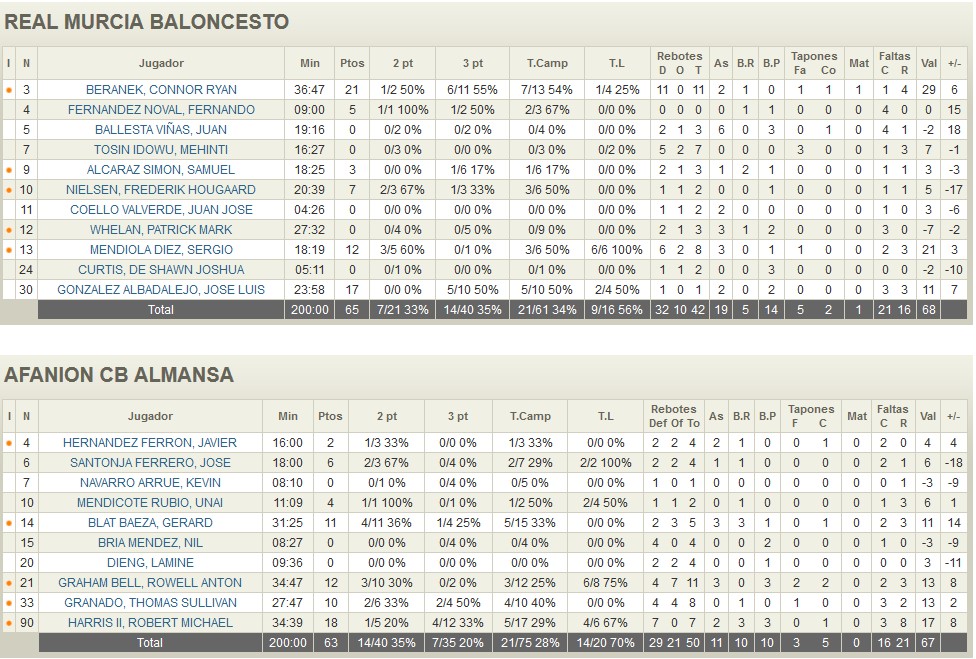 El sábado fue el Palacio Principe Felipe de Murcia el que acogía el primer envite de la serie que se presumía más abierta. El Real Murcia Baloncesto recibía la visita del Afanion CB Almansa en un partido que fue a impulsos. Los locales firmaron un espectacular primer cuarto, con gran acierto exterior y con Beranek (13 puntos) como jugador más destacado para llevar un 22-10 al final del primer periodo. Almansa no se descompuso y, desde la defensa, consiguió engancharse al partido antes del descanso (29-31).