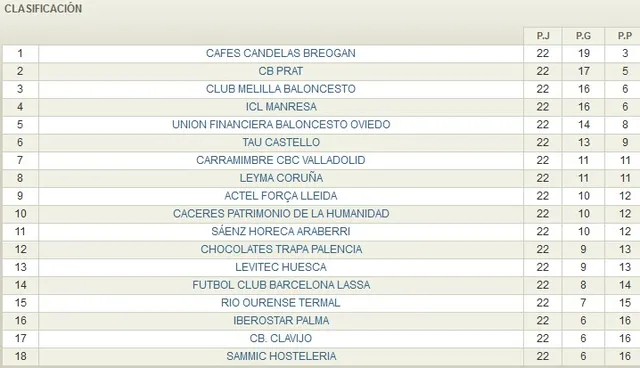 En la cola de la tabla quedan tres equipos igualados con seis triunfos: Iberostar Palma, CB Clavijo y Sammic Hostelería en una batalla para evitar acabar en puestos de descenso.