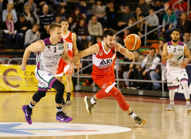 Gran partido para cerrar la jornada el disputado en el Nou Congost entre dos equipos que no han especulado y han puesto todas las cartas sobre la mesa para conseguir la victoria. Y eso que había cartas de gran valor como las de Nacho Martín, Lluis Costa, Alex Wintering, Jordi Trías o Johnny Dee. Un partido jugado en quinta velocidad que comenzó con Wintering anotando 7 de los primeros 9 puntos de su equipo, y con un Sáenz Horeca Araberri manejando el tempo del partido. El 18-26 del final del primer cuarto trajo intranquilidad a los aficionados manresanos, pero los locales tienen un banquillo lo suficientemente amplio para no bajar de intensidad durante los 40 minutos. Buen trabajo de Noah Allen y Jordi Trías para ir recuperando ventaja y firmar un gran segundo tiempo que se cerró con un mate de Nacho Martín que ponía el 51-47, con casi 100 puntos anotados en 20 minutos. Tras el paso por los vestuarios el ritmo no bajó, aunque los de Antonio Pérez no pudieron mantener el acierto anotador. Poco a poco, los de Aleix Duran controlaban el partido, con un Lluis Costa muy inteligente en la dirección y con una buena racha anotadora de Álvaro Muñoz. Son muchas las armas ofensivas de los catalanes (5 jugadores por encima de los 10 puntos) y una canasta del alero abulense ponía la máxima diferencia (91-75) a falta de 6 minutos para el final. Con la victoria ya decidida, el ICL Manresa llegó