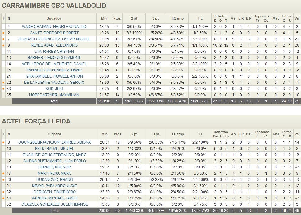 La reprimenda de Paco García a sus jugadores tras tres derrotas consecutivas ha tenido el efecto deseado por el técnico vallisoletano, que se encontró con un Pisuerga entregado y unos jugadores muy intensos en defensa. Después de un primer cuarto muy igualado, el Carramimbre dejó en 6 puntos a su rival en un gran segundo cuarto que marcó el inicio del éxito local. Óscar Alvarado anotaba y dirigía con inteligencia (13 puntos y 9 asistencias), mientras que Alejandro Reyes (titular por delante de Graham Bell) respondía a la confianza con un doble-doble (13+12). El Actel Lleida, al que parece que pesa la mala dinámica del último mes no pudo recuperar el terreno perdido y no llegó a inquietar la victoria en los últimos minutos.