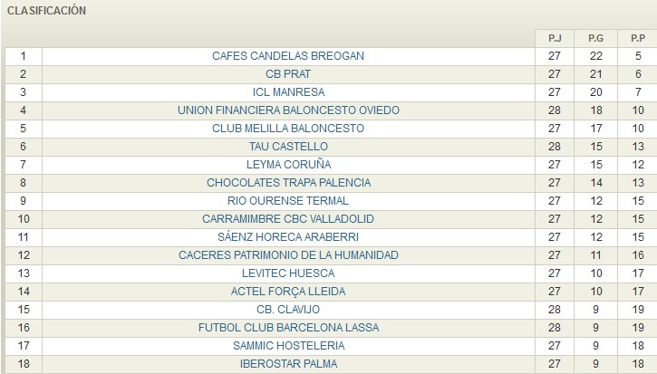 RESULTADOS JORNADA 28 LEB ORO