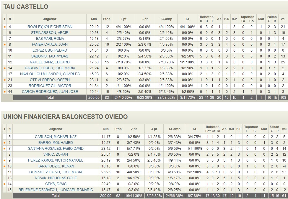 La clave: La salida arrolladora del TAU Castelló tras el paso por vestuarios con un Edu Gatell en modo MVP para decidir cuándo y cómo debía ganar su equipo. Acertado en la anotación (15), serio bajo los aros (6 rebotes), generoso en ataque (1 asistencia) y trabajador en defensa (4 robos).