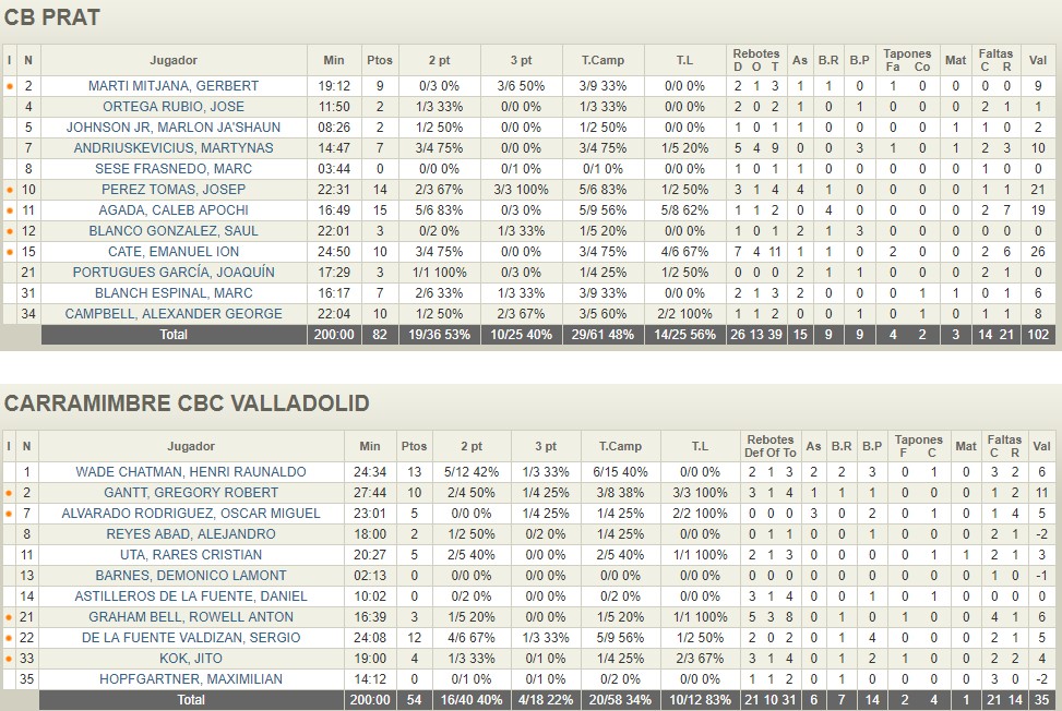 | CB PRAT – CARRAMIMBRE CBC VALLADOLID | 82-54 |