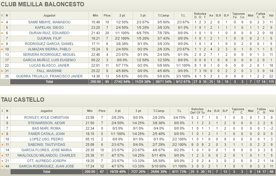 | CLUB MELILLA BALONCESTO – TAU CASTELLO | 95-67 |