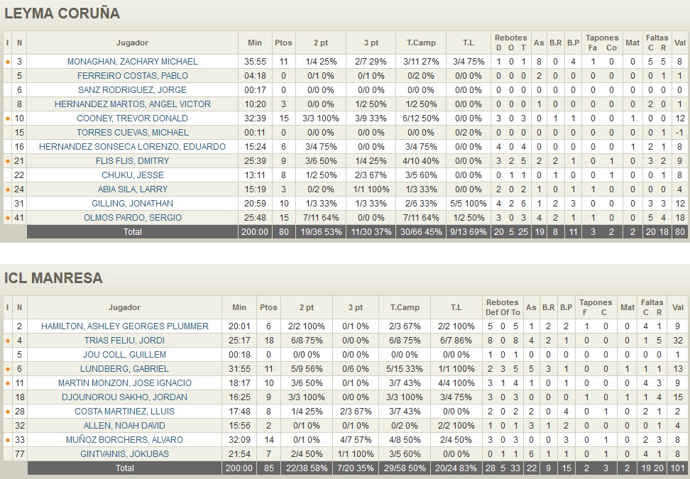 | LEYMA CORUÑA – ICL MANRESA | 80-85 |