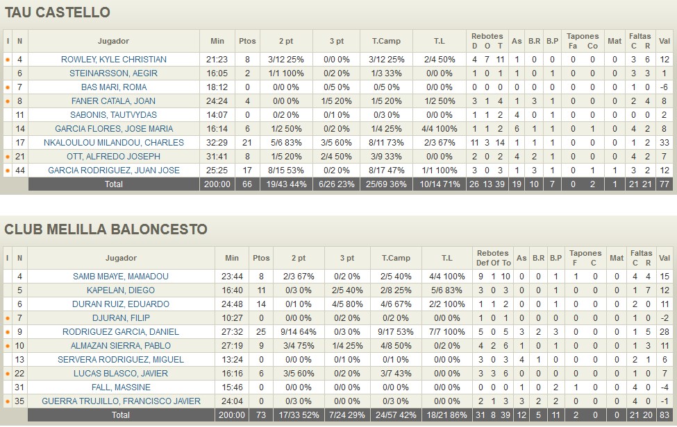 | TAU CASTELLO – CLUB MELILLA BALONCESTO | 66-73 |