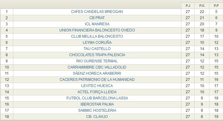 RESULTADOS JORNADA 27 LEB ORO