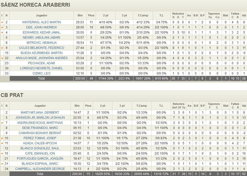 El CB Prat aprovechó, como ya hiciera el Breogán, la derrota del Manresa en Logroño para ponerse como segundo en la clasificación tras un triunfo cómodo sustentado en un segundo cuarto soberbio y un tercero en el que dejó ya todo sentenciado. Con la posibilidad de dar minutos a todo su equipo –hasta diez jugadores disputaron al menos diez minutos- el peso de anotación la llevaron los habituales Josep Pérez y Marc Blanch junto a Joaquín Portugués y el gigante Emanuel Caté.
