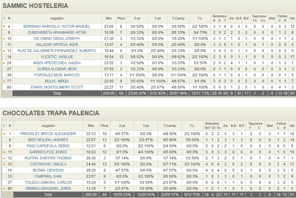Victoria fraguada en la primera parte de un Chocolates Trapa Palencia que impuso un ritmo muy alto en los primeros minutos ante un Sammic Hosteleria Iraurgi que intentó ajuntar el marcador en la segunda mitad pero sin mucho éxito. Los trece triples de los visitantes junto a las 17 pérdidas de los locales marcaron el devenir de la victoria.