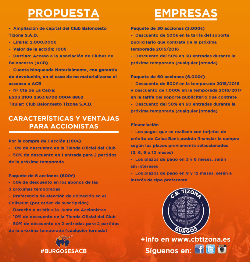 Tras dos años en los que no pudo asumir el desembolso que supone el entrar a formar parte de la ACB, desde el CB Tizona están intentando abrir nuevas vías que les permitan tener la capacidad económica para asumir el salto.