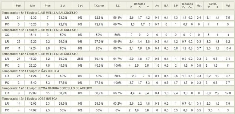 La pasada campaña disputó 37 partidos con el club melillense promdiando 6.9 puntos y 4.1 rebotes en los 16 minutos que promedió por partido.