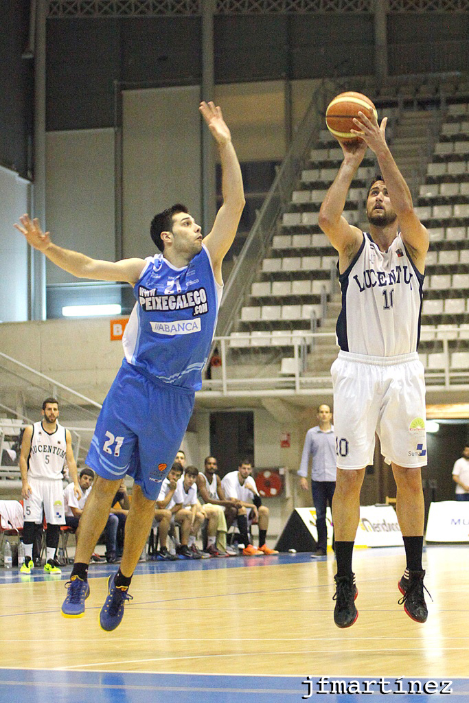 El Lucentum Alicante completa el cuadro de semifinales en la Adecco Plata 2014-15 después de imponerse a Marín Peixegalego por 66-64 en un encuentro de contrastes y en el que los alicantinos dilapidaron una renta de hasta 20 puntos y se impusieron gracias a un triple de Edu Guillén a falta de pocos segundos para el final del encuentro. Amics Castelló será el rival de Lucentum en el derbi de la Comunitat Valenciana.
