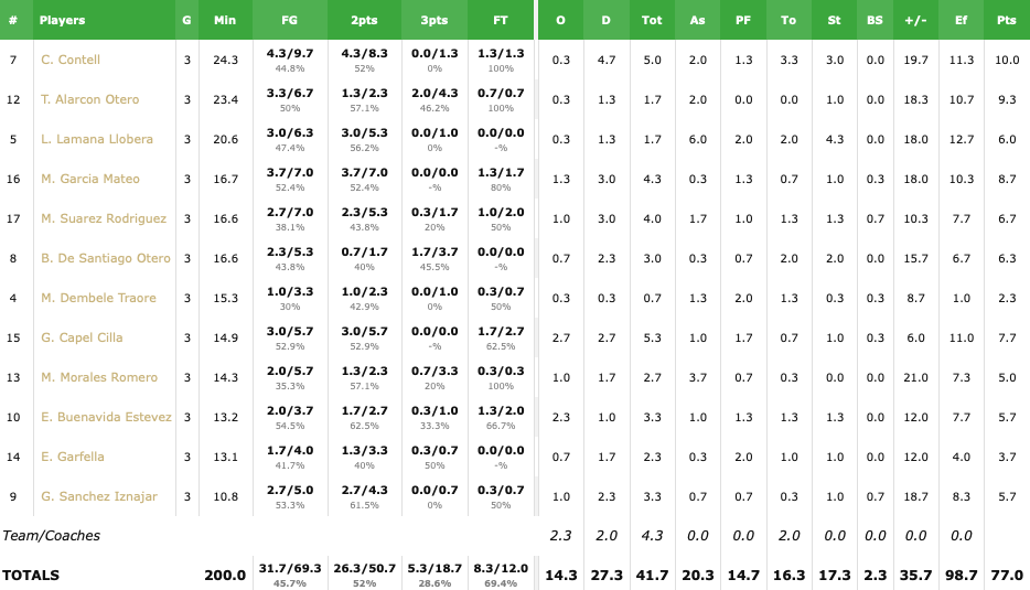 Ahora tocará esperar rival y ver como quedan los posteriores emparejamientos de octavos de final. Pero esta primera parte y los dos partidos anteriores deja al descubierto el buen juego colectivo que posee el combinado nacional, con jugadores a seguir muy de cerca, como Marta García de Segle XXI (escogida en 2018 en el quinteto ideal del Europeo U16), Claudia Contell de Valencia, Laia Lamana recién fichada por Celta Zorka Recalvi procendente de Snatt’s Femení Sant Adrià, y sobre todo Mama Dembele de la Universidad de Missouri y Txell Alarcón.