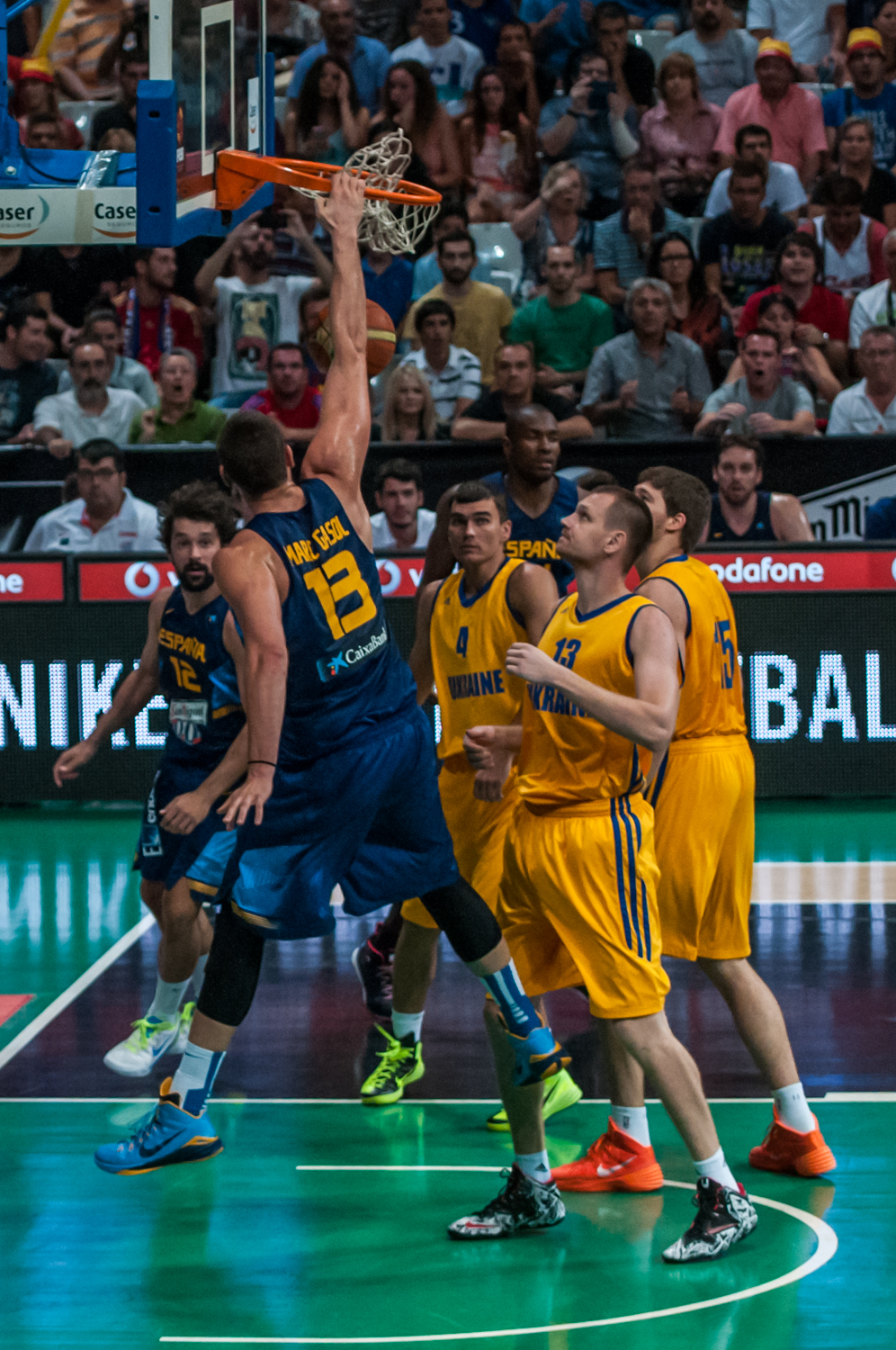 Al contrario que el día anterior, España empezó encomendándose al gen Gasol (Pau-9 puntos, Marc 6). Los hermanos de la selección fueron una fuerza imparable para Ucrania, que sólo encontró a una respuesta solvente en Viacheslav Kravtsov. De nuevo, el tiro exterior se convirtió en la principal lacra de los de Orenga, con un insuficiente 0/4 en los primeros diez minutos (19-14).
