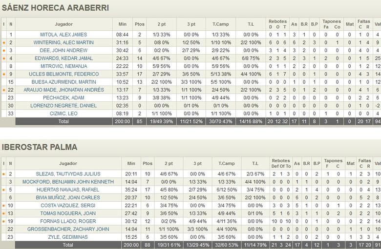 Sáenz-Horeca Araberri vs Iberostar Palma (85-88)