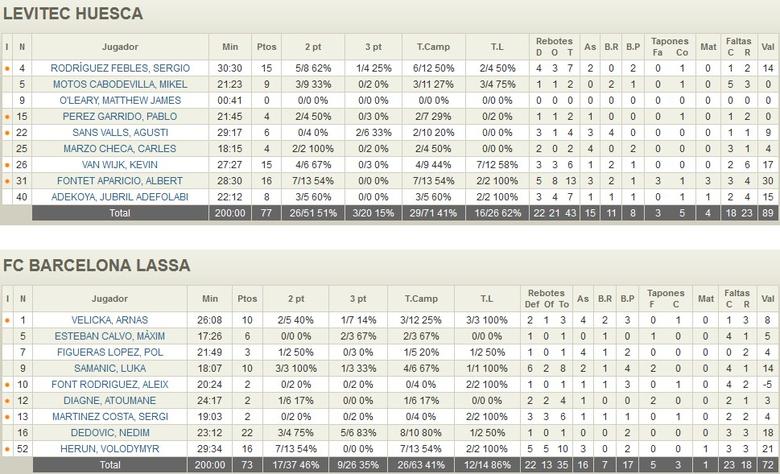 Levitec Huesca vs FC Barcelona Lassa (77-73)