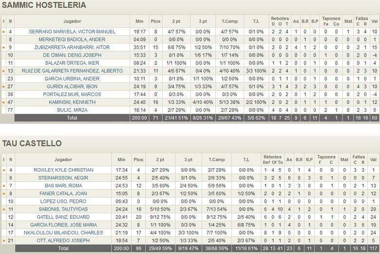 SIN OPCIÓN PARA SAMMIC Con veinte puntos de margen, los visitantes no pudieron confiarse ante un Sammic Hostelería en el que Aitor Zubizarreta y Kenneth Kaminski pusieron unos puntos que, sin embargo, no fueron suficientes para impedir la segunda derrota consecutiva de un TAU Castelló que toma aire en la tabla (71-96).