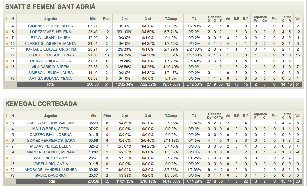 27 puntos y 9 faltas recibidas 19 de valoración |