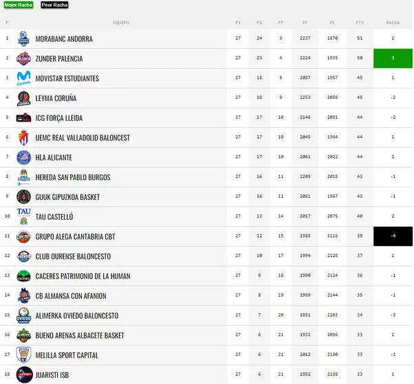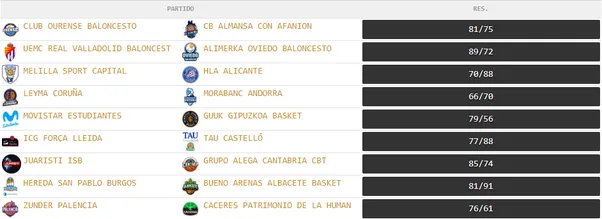 Por su parte, el Real Valladolid se asienta en puestos de Playoffs gracias a que consiguió una nueva victoria ante el Alimerka Oviedo. Los de Oviedo llevan 3 partidos seguidos perdiendo. También el Club Ourense Baloncesto se impuso al CB Almansa con Afanion, lo que significa que el Ourense está cada vez más lejos de la zona de peligro y parece asegurar su salvación.