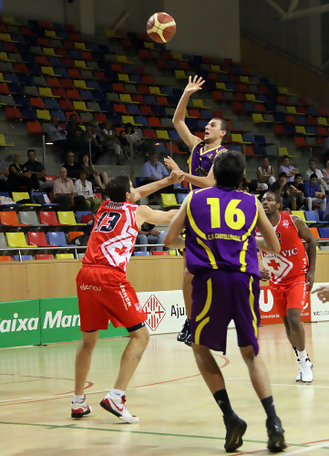En la temporada 2007-08, el paso por 2ª Catalana también fue triunfal. Sólo cuatro derrotas en liga regular (balance 26-4) y tres victorias de ventaja al segundo clasificado. Le preguntamos a David López si el objetivo fue el ascenso desde el comienzo vista la superioridad en 3ª Catalana. Su respuesta es parecida, pero con los matices de su carácter ganador, respecto a la que nos dio Tolón: “La verdad es que desde la primera vez que subimos, el objetivo ha sido siempre el de mantener la categoría. Eso era lo que nos decía el cuerpo técnico. Pero nosotros los jugadores, en cada partido que ganábamos, siempre bromeábamos con el ascenso a la siguiente categoría”. También en esta ocasión se alcanzó la Final a 4 tras pasar la eliminatoria previa. Se derrotó al anfitrión, el CB Argentona, pero esta vez no se pudo quedar Campeón de Catalunya de 2ª Catalana al perder con el Llefià. El balance final fue otra vez espectacular (29-5).