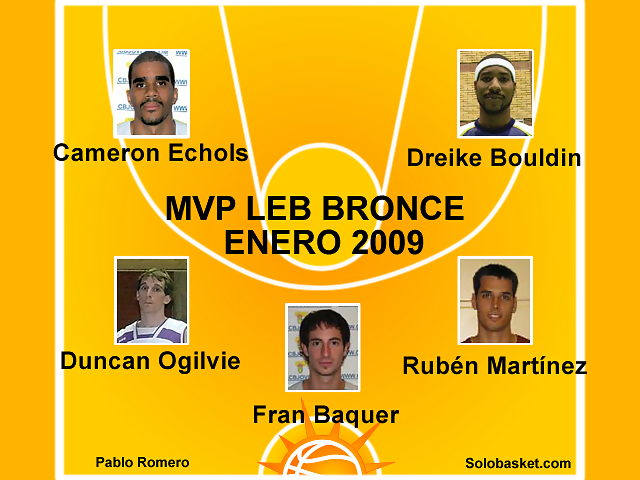 La Liga Adecco LEB Bronce ha puesto broche a su primera vuelta a lo largo de este mes de enero disputando además su correspondiente Copa. El equipo más completo del mes ha sido el Ávila de Antonio Cano con cuatro victorias en otros tantos partidos, pero sin lugar a duda ha sido el Cantabria Lobos de Quino Salvo el gran beneficiado del primer mes del 2009; con 3 victorias y una derrota en el campeonato han arrebatado a Tíjola el liderato que comparten junto a los almerienses y a Valdemoro. El pasado fin de semana, derrotaban por segunda vez en apenas 15 días al conjunto de Antonio Herrera y se llevaban a domicilio la II edición de la Copa LEB Bronce.