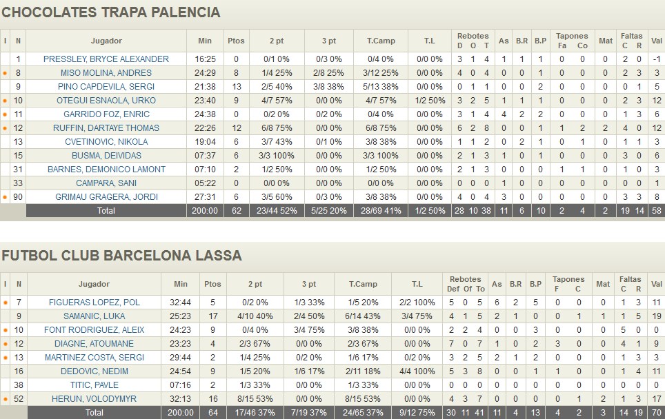 La clave: El mayor acierto del FC Barcelona a lo largo de los últimos minutos de un partido que el Trapa Palencia parecía tener controlado pero que se escapó para sus intereses a raiz de los cinco puntos con los que Pol Figueras decantó la balanza a favor de los blaugranas