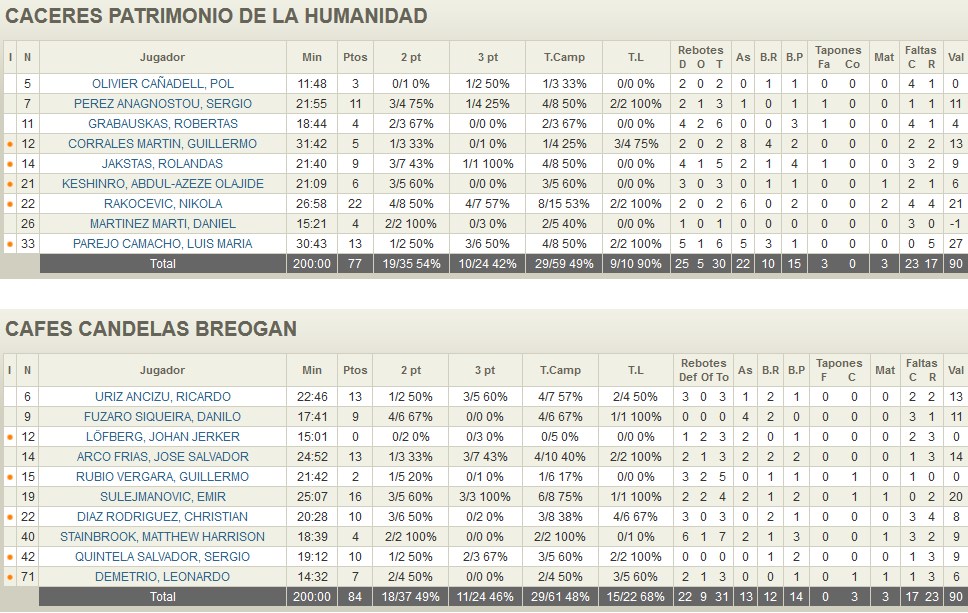 La clave: Los tres triples prácticamente consecutivos con los que Emir Sulejmanovic dinamitó el partido tras el paso por vestuarios haciendo inútiles los esfuerzos de un Cáceres que tuvo en el capitán Luis Parejo a su MVP (27 val).