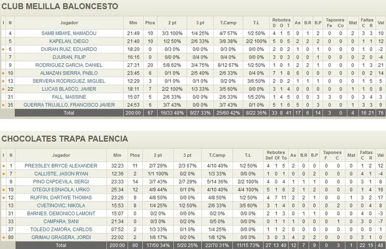 INICIO: Partido típico de principio de temporada en el que los fallos se acumularon durante los primeros minutos. Tanto melillenses como palentinos demostraron que tienen que ajustar todavía sus sistemas e incorporaciones para poder ofrecer lo mejor de sí mismo. De ahí que el primer cuarto acabase con empate a 17, con numerosos errores en el tiro e imprecisiones en los pases.