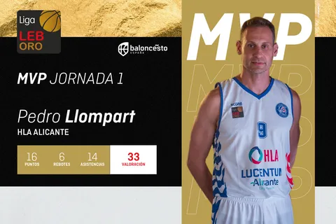 Regresó la Liga LEB Oro a las pistas y el pasado fin de semana y lo hizo coronando al incombustible Pedro Llompar (HLA Alicante) como el MVP de una jornada en la que su quinteto ideal comenzó a fraguarse desde su presencia en el puesto de base.