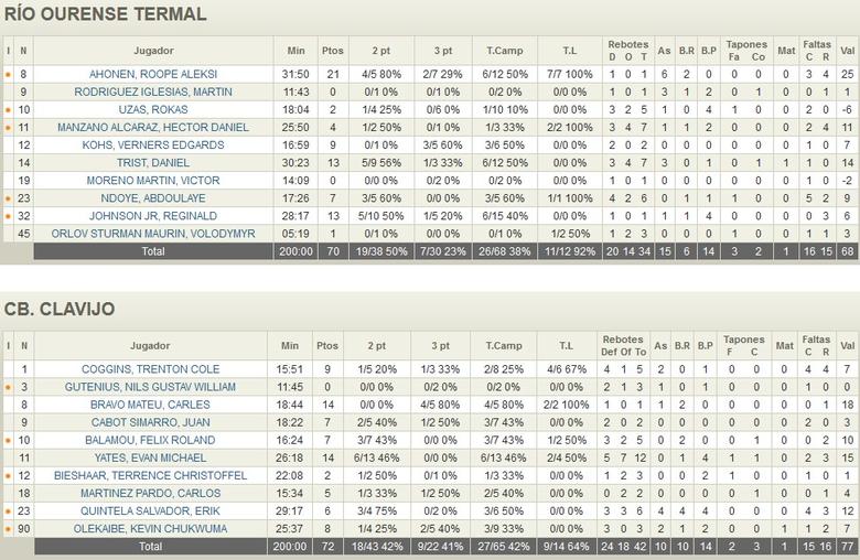 Rio Ourense Termal vs CB Clavijo (70-72)