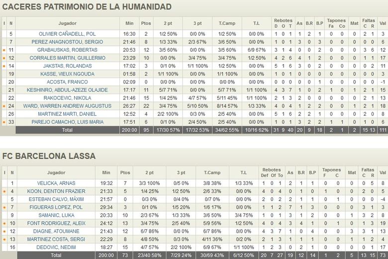 EL FC BARCELONA LLEGA CON BAJAS Los azulgranas llegaban a Cáceres sin hombres como Gerun, Kurucs o García y delante tenían un equipo con experiencia. El acierto local fue una de las claves, en un partido donde los azulgranas no tuvieron opción de entrar en partido.