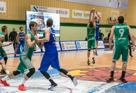 IGUALDAD DESDE EL PRIMER MINUTO: los locales llegaban con la importantísima baja de José Simeón, que por molestias en el isquio arrastradas del último partido, no pudo entrenar y por lo tanto tampoco disputó el partido. El capitán Manu Ferreiro tuvo que asumir el papel de base principal y lo hizo de la mejor manera posible. Derksen, imparable en este primer cuarto, la defensa que planteaba el Huesca no fue capaz de parar al versátil jugador estadounidense, que anotó con comodidad todo lo que tiró. El equipo rival salió con toda la artillería a pista, y el base lituano era el principar referente, pues su control de balón, la visión de juego y la facilidad en el pase puso en apuros al Marín Peixegalego durante todo el enceuntro. Gintvainis y Gantt desde el perímetro fueron los focos ofensivos de este primer cuarto (20-21).