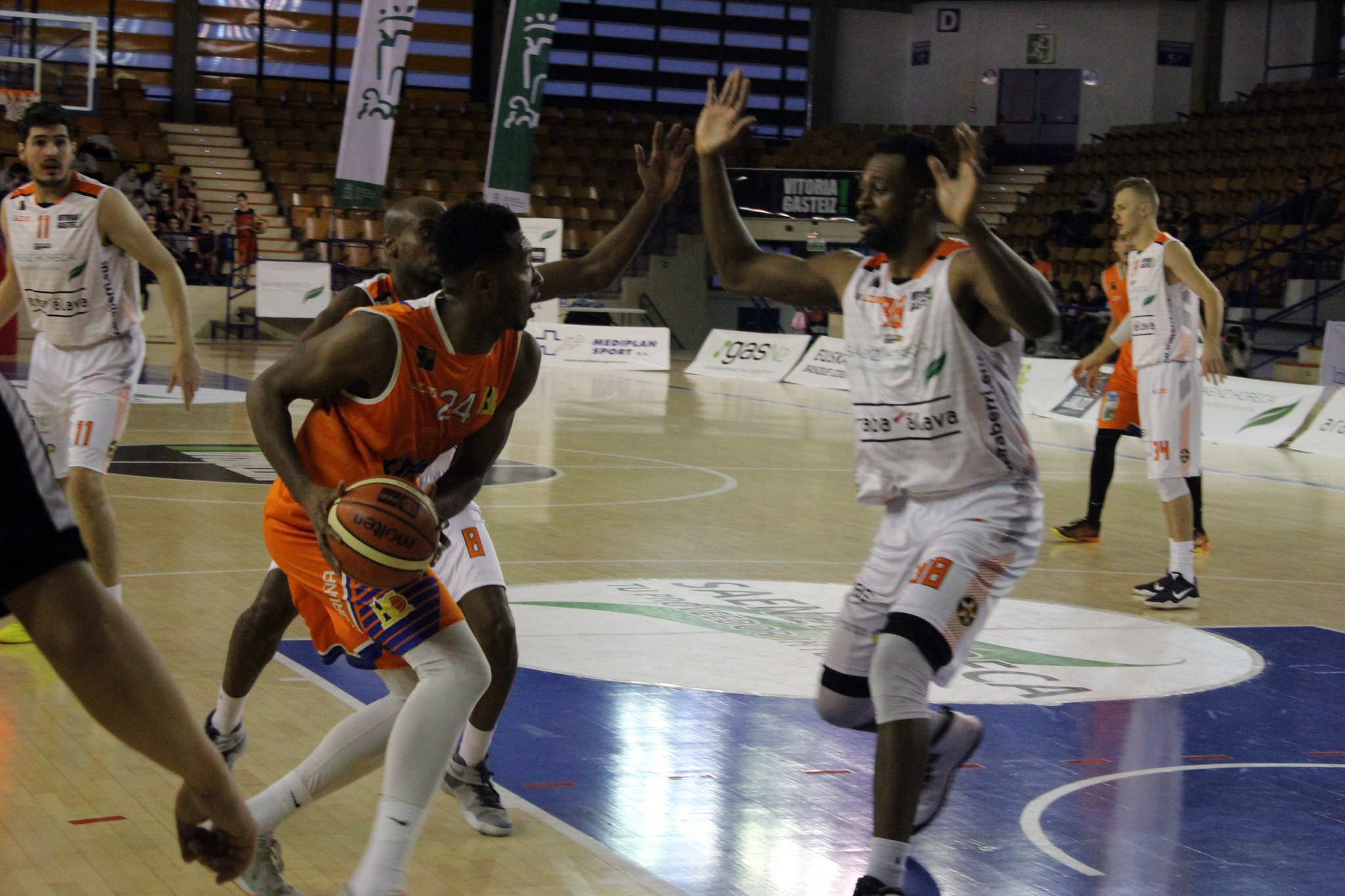 SEGUNDO Y TERCER CUARTO DE BAJA CALIDAD. El segundo y tercer período fueron iguales en su calidad, bastante baja, parecido más a un pasacalles que a un partido de baloncesto. La diferencia entre uno y otro fue clara. La tendencia del segundo cuarto fueron los alocados parciales. Tras el 26-30 un 11-0 local (37-30) respondido por uno idéntico de (37-41) con Javi Múgica en plan estelar (8 puntos). La canasta postrera de Bivià dejaba el 39-41 al descanso. El tercer cuarto con la misma tónica de poquísimas diferencias entre ambos equipos, dos puntos a lo sumo para uno u otro equipo. La diferencia llegó hasta los cinco puntos (58-53) con un triple sobre la bocina de Fornas que dejaba una injusta diferencia a favor del equipo local.