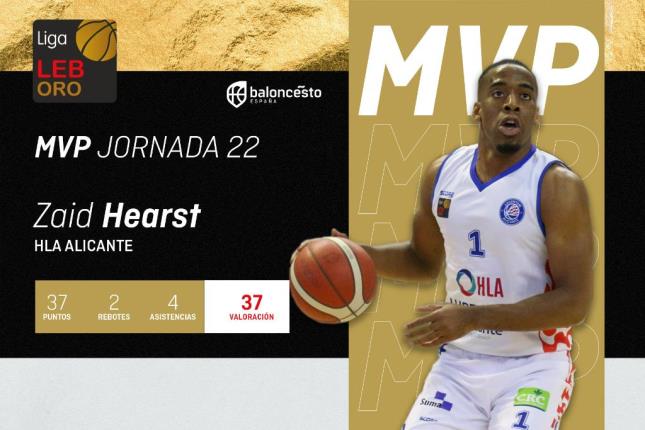 Escolta: Zaid Hearst (HLA Alicante) 37 val: 37 puntos (9/14 T2 y 4/7 T3), 4 asistencias, 2 rebotes, 1 recuperación y 7 faltas recibidas