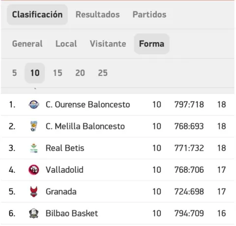 Como muestra de la igualdad en esta liga, la clasificación virtual de las últimas diez jornadas, donde el COB se muestra como el equipo más en forma. Los gallegos son una de las mejores defensas y sin embargo son el equipo con menos faltas cometidas con diferencia. Algo poco habitual pero que habla bien de la forma de defender que tiene el equipo orensano.