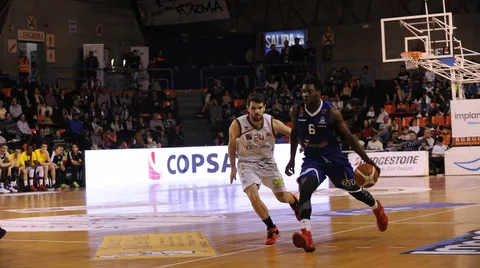 IGUALDAD. Los minutos consecuentes continuaron con máxima igualdad de ambos conjuntos y con el protagonismo centrado en la pareja arbitral, cuyas decisiones eran puestas en tela de juicio por la afición palentina. En una de estas decisiones Marc Blanch recibiría una técnica que le llevaría al banquillo local y que le costaría no volver a jugar. La falta de minutos del jugador no pasó desapercibida para la afición, al ser el alero catalán una parte crucial del equipo en el juego exterior (38-40).