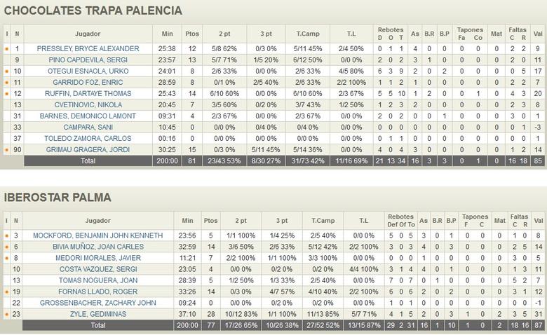 El equipo buscaba el triple, pero Palencia lograba hacer falta a Fornas antes de ejectuar el tiro y le llevaba a la línea de los tiros libres. Entraban los dos y colocaban un 78 a 77 a falta de 7 segundos. Joan Tomás buscó hacer la falta y el árbitro señaló antideportiva dejando medio sentenciado el partido. Garrido anotaba los dos y Palencia volvía a tener pelota, Otegui recibía e iba de nuevo a la línea de los tiros libres para dejar el resultado final de 81 a 77.