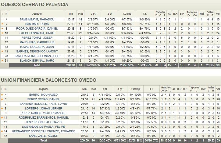 | QUESOS CERRATO PALENCIA – UNION FINANCIERA BALONCESTO OVIEDO | 81-70 |