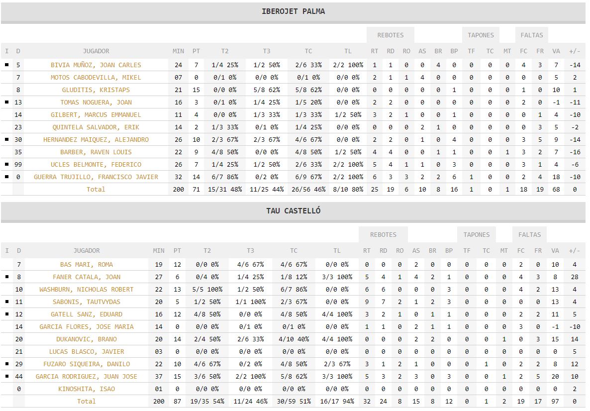 Tras el fallo de la FEB a favor de Iberojet Palma, el partido se repetía ayer por la tarde. La reanudación se llevaba a cabo con saque de fondo de TAU tras triple de Àlex Hernández, anteriormente anotado erróneamente por la mesa de dos. El marcador con 50-56, en el tercer cuarto y a falta de 5’40” para el final del mismo.