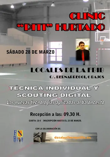 "El próximo Sábado 28 de Marzo a partir de las 09,30 horas en las instalaciones de la FBIB de Palma, se impartirá el clinic para entrenadores "Técnica Individual y Scouting Digital" Las nuevas Tecnologías aplicadas al baloncesto.