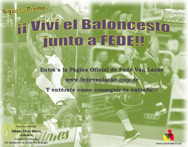 El escolta del CB Valladolid Fede Van Lacke prosigue con su empeño de fomentar el baloncesto y la afición a su equipo y lo hace mediante el sorteo de entradas desde su web personal (www.fedevanlacke.com.ar) para ver los partidos en casa de su equipo.