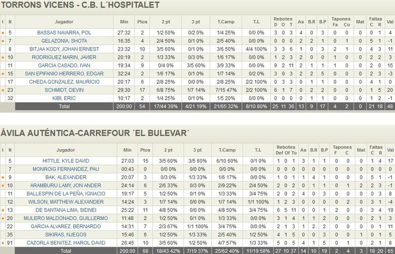 Primer triunfo de la temporada para Ávila Auténtica-Carrefour 'El Bulevar' tras su visita a la cancha del Torrons Vicens-CB L'Hospitalet. Un partido que arrancaba con dominio local y con un Devin Schmidt (17p, 7r) muy eficaz en su juego. Por parte de Ávila aparecía la figura de Hittle (15p) aportando anotación y sumando a la enorme labor reboteadora y de intimidación de Sidao Santana (11p, 11r). Los abulenses cogían ya la iniciativa en el marcador y tras una fase de imprecisiones empezaron a consolidar su ventaja en el marcador. Hospitalet no encontraba acierto exterior (4/21) y lo acusaba al no hallar el equilibrio deseado en su juego. A pesar de ello, los locales llegaron a acercarse en el marcador en el último periodo. Tras un 42-44 llegó un parcial 0-8 que frenaba la ilusión local aunque todavía llegarían a acercarse, pero tanto Hittle como Santana se encargaron de frenar los envites y cerraban un triunfo importante para Ávila.