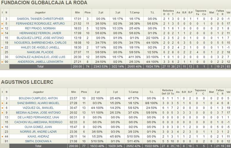 Agustinos Leclerc arranca con un trabajado triunfo la temporada. Los de Jorge Álvarez sacaron adelante un partido que dominaron en la primera mitad (28-43 al descanso) pero que en la segunda mitad se fue apretando gracias al buen trabajo del equipo local, liderado por la presencia interior de Nakidjim (11p, 8r) y por la buena dirección de Tury Fernández (11p, 5a). El conjunto leonés tuvo en Manu Vázquez (13p, 7r) a su mejor hombre y aprovechó también el acierto exterior de Kavas (14p, 3r) para obtener rentas. Los manchegos acusaron su desacierto exterior (3/22) y aunque remontaron en la segunda mitad no pudieron lograr culminar la gesta.