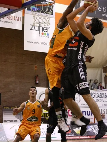 ZORNOTZA CRECE En el segundo periodo el equipo vasco se hizo claro dominador de la faceta reboteadora y marcaba el ritmo del partido. El juego exterior de ambos equipos comenzaba a funcionar. Russell Byrd anotaba sus primeros triples desde su llegada a la Fundación Lucentum. Adrián Fuentes lideraba el juego de su equipo, mientras que Íker Salazar comenzaba a hacerse omnipresente en el juego de Zornotza. Al descanso se llegaba con 40-43 y el partido abierto.