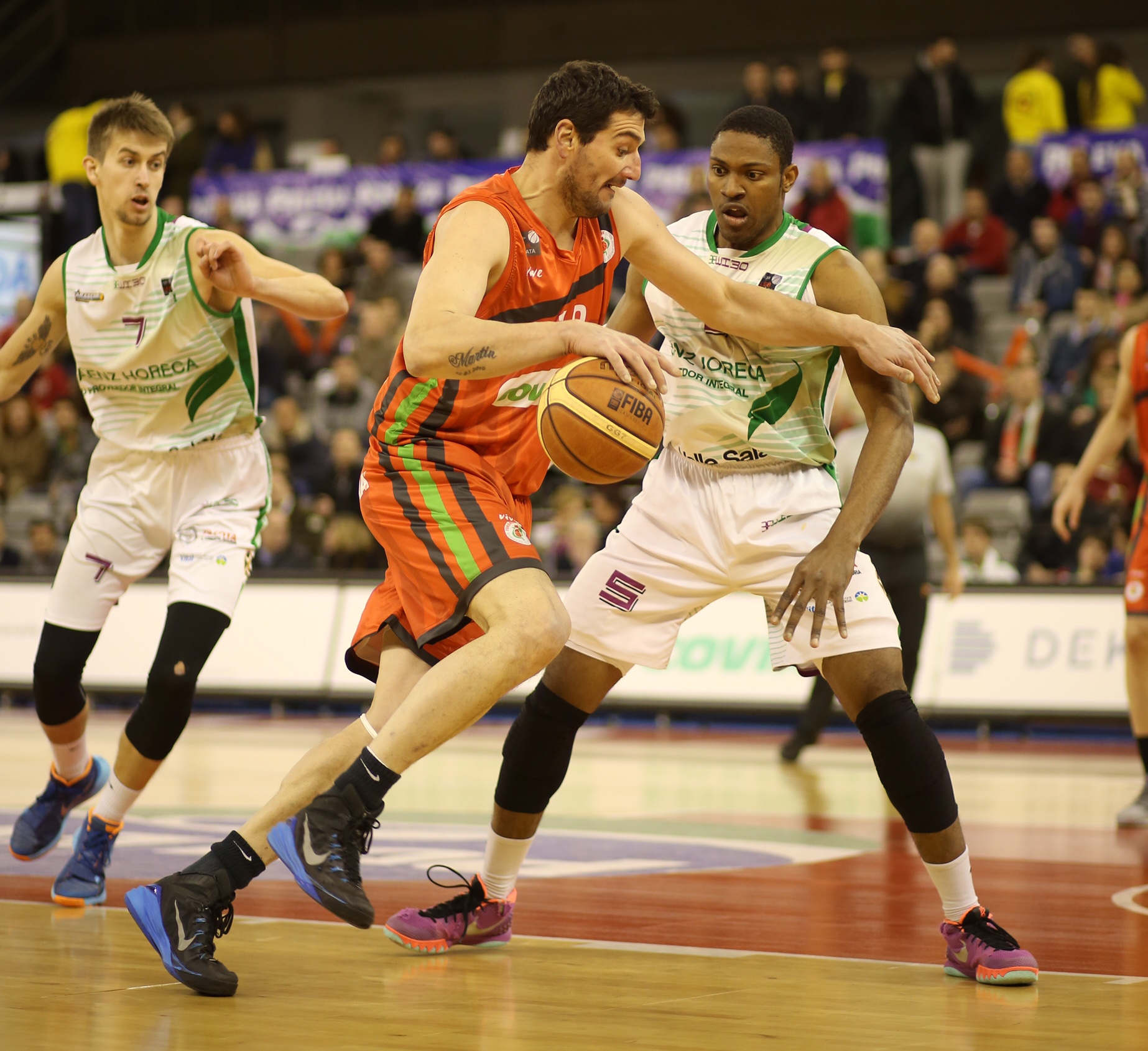 JUEGO INTERIOR. Granada sabía de la importancia de frenar el juego interior de Araberri, pero no consiguió frenarlo en ningún momento. Fueron 14 las canastas encajadas bajo aros en la primera mitad, pero es que en el segundo periodo del encuentro fueron 16 los tiros cerca del aro anotados por los visitantes. La versatilidad de Levesque (25 pts), de lo mejorcito que ha pisado el parquet nazarí esta temporada, y la envergadura de Tyrant De Lattibeaudiere (19 pts), fueron clave en el dominio visitante en ambas zonas. Jesús Fernández (13 pts) y un mermado físicamente Jordan Stone (10 pts) fueron claramente insuficientes, sobre todo cuando no recibieron ayudas de sus compañeros a la hora de defender las internadas rivales en la pintura. La defensa granadina fue un despropósito.