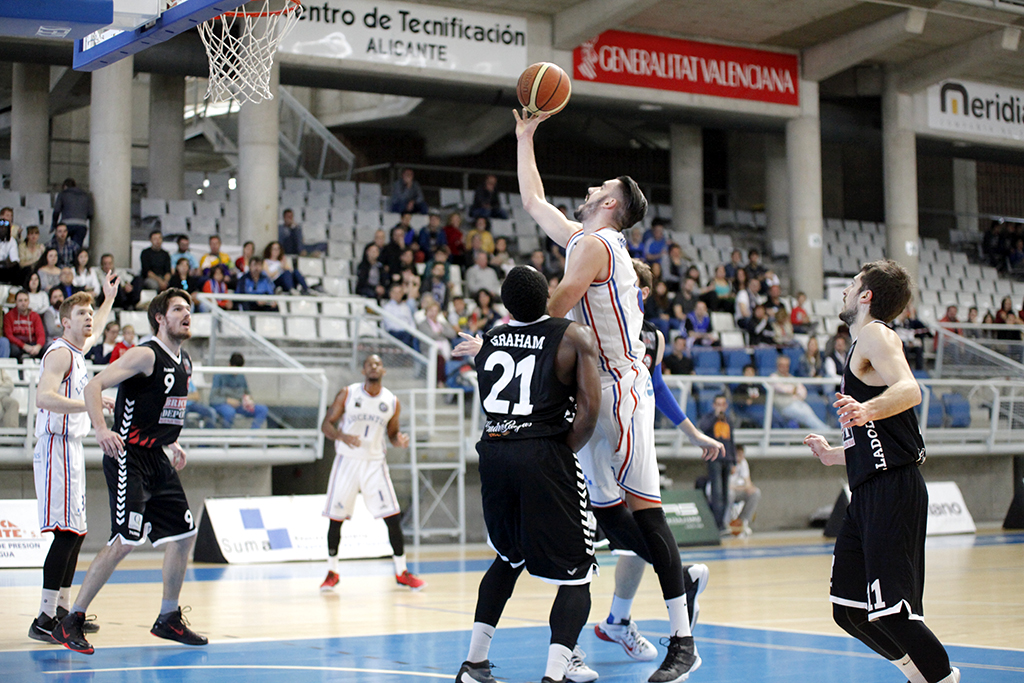 PLÁCIDO TRIUNFO ALICANTINO Ante estas circunstancias, los de Zapata intentaron mantener la concentración e incluso ampliaron ligeramente su ventaja. Sin embargo, los castellanoleoneses aprovecharon las imprecisiones ofensivas de los locales para maquillar el resultado en los últimos compases del encuentro. En estos minutos finales, entraron en juego los menos habituales como el canterano Jordá, que anotó sus primeros puntos en LEB Plata, y redondearon un triunfo con un gran trabajo colectivo.